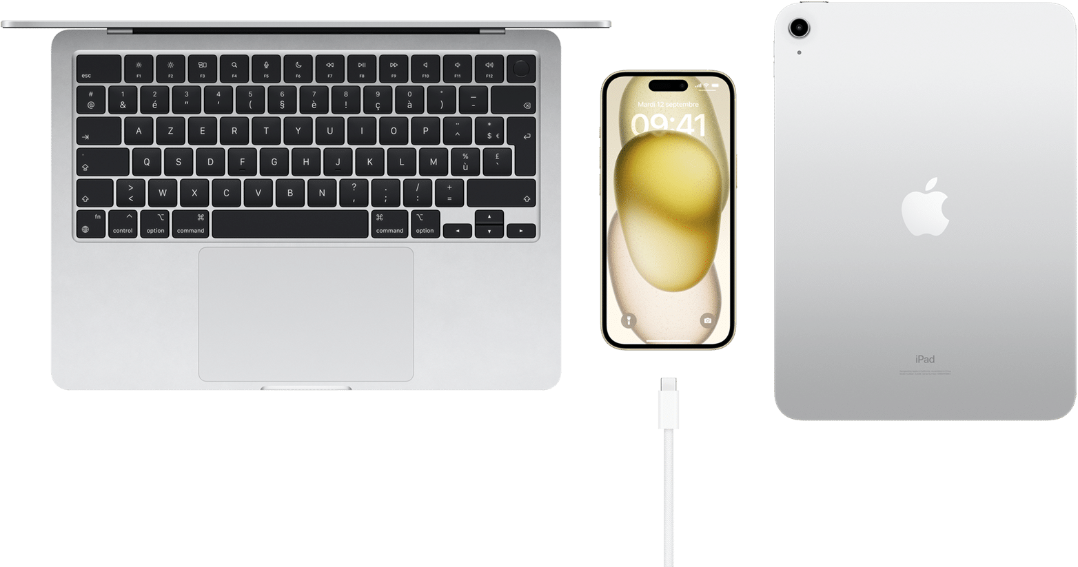 Le nouveau connecteur USB-C vous permet de recharger votre Mac ou iPad avec le même câble que votre iPhone 15. Vous pouvez même utiliser votre iPhone 15 pour recharger votre Apple Watch ou vos AirPods5. Fini, les câbles emmêlés.